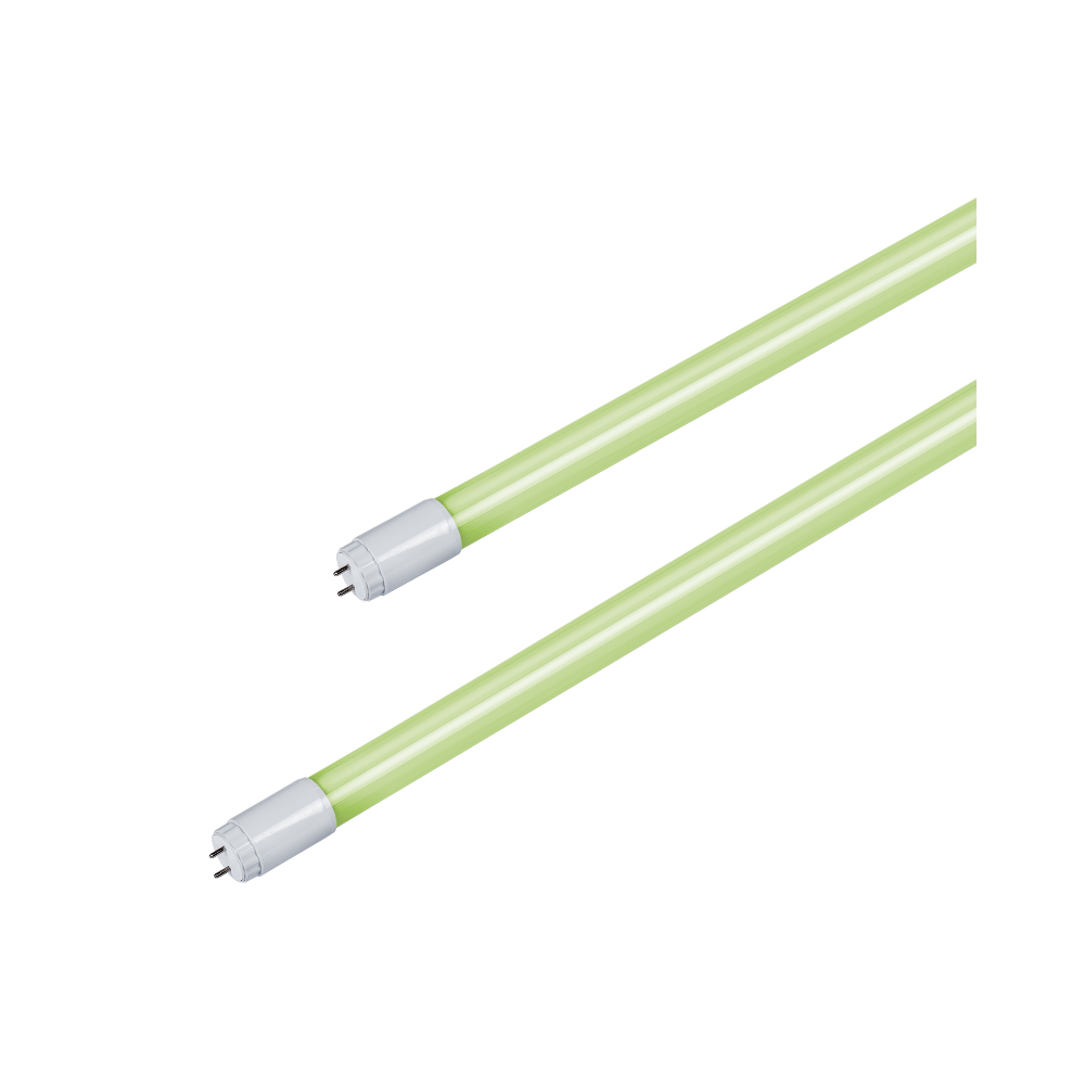 Green LED tube with spacial purpose used for fruits and vegetables in supermarkets.