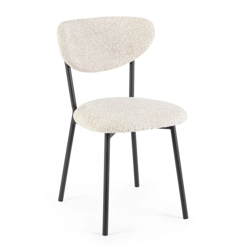 STEEL FRAME EPOXY POWDER COATED. SEAT AND BACKREST IN PLYWOOD WITH COVERING IN POLYESTER, BOUCL? EFFECT. FILLING IN POLYURETHANE FOAM (DENSITY 25KG/M3). TO BE ASSEMBLED.