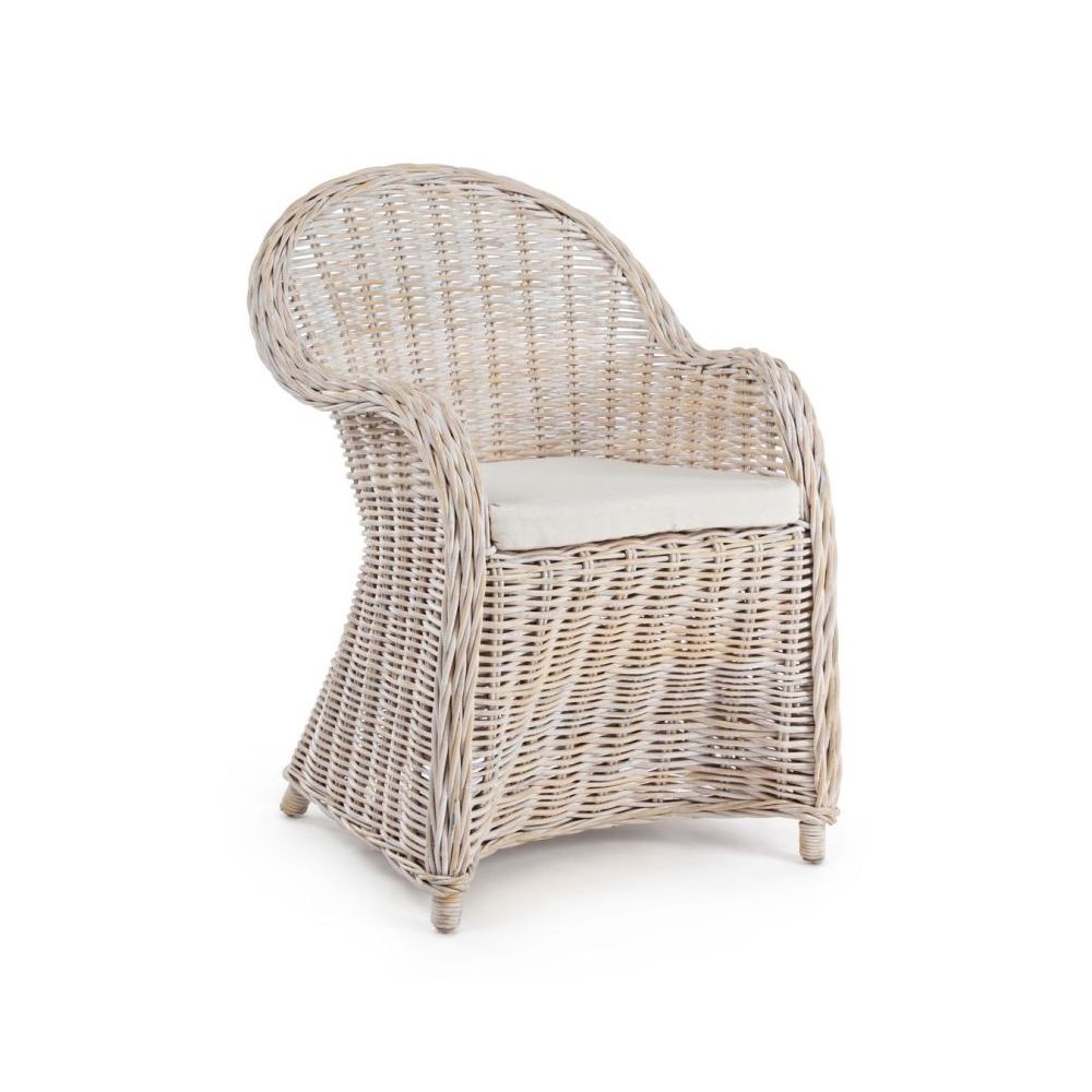 RATTAN FRAME, KUBU WEAVING. NITROCELLULOSE FINISHING. CUSHION WITH REMOVABLE COVER IN COTTON. PLEASE DO NOT EXPOSE THE FURNITURE TO DIRECT SUNLIGHT AND BAD WEATHER. PACKING WITHOUT CARTON BOX.