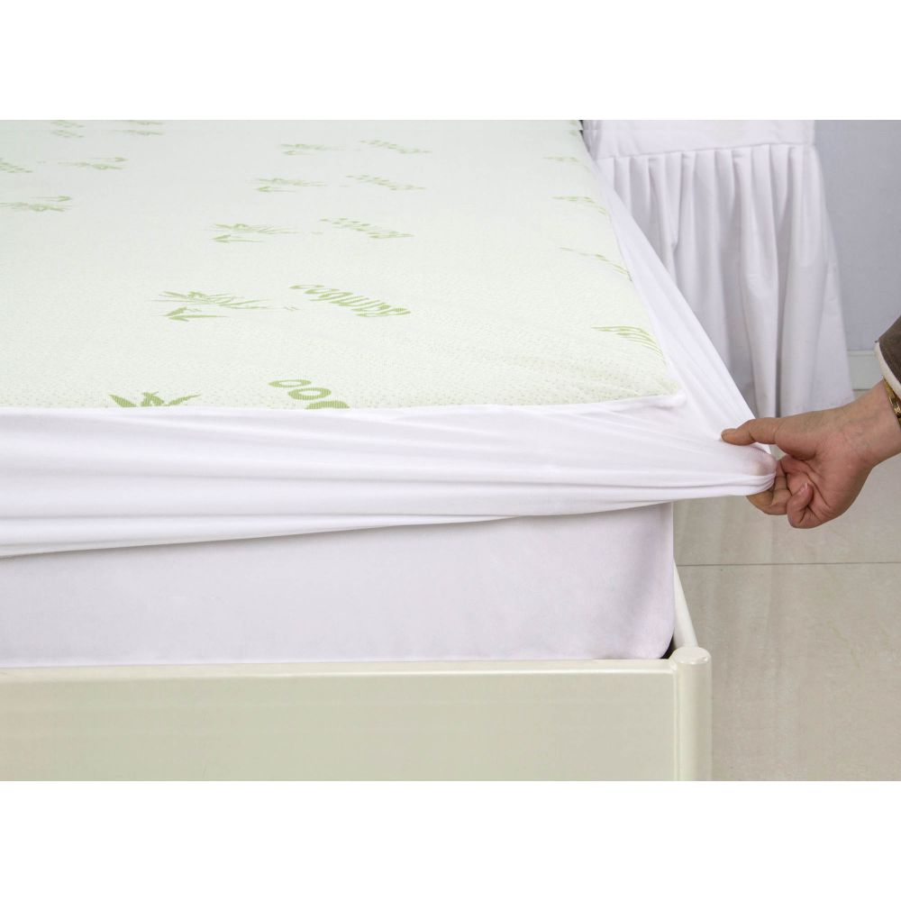 Bamboo waterproof mattress protector designed to protect the mattress from liquids and stains Available in sizes: 90 × 200 × 30 cm, 160 × 200 × 30 cm and 180 × 200 × 30 cm Waterproof and ensures maximum hygiene Silent and breathable – does not retain body heat Hypoallergenic, suitable for sensitive skin Keeps your mattress dry and stain-free With fitted skirt suitable for mattresses up to 30 cm height Suitable for machine washing up to 40°C Composition – cover fabric: 50% bamboo / 50% polyester Composition – filling: 100% polyester Composition – backing: waterproof polypropylene membrane Composition – skirt: 100% polyester *Images are for illustrative purposes only and colors may vary depending on device display settings.