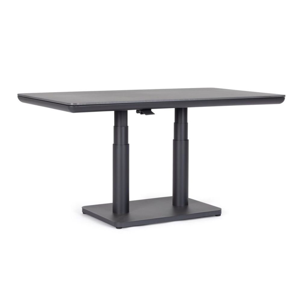 STRUCTURE IN POWDER-COATED ALUMINIUM (POLYESTER). SINTERED STONE TOP (NATURAL STONE WORKED AT HIGH TEMPERATURES)(THICKNESS 11MM). ADJUSTABLE HEIGHT WITH HANDLE. STAINLESS STEEL SCREWS. BASE TO BE ASSEMBLED.