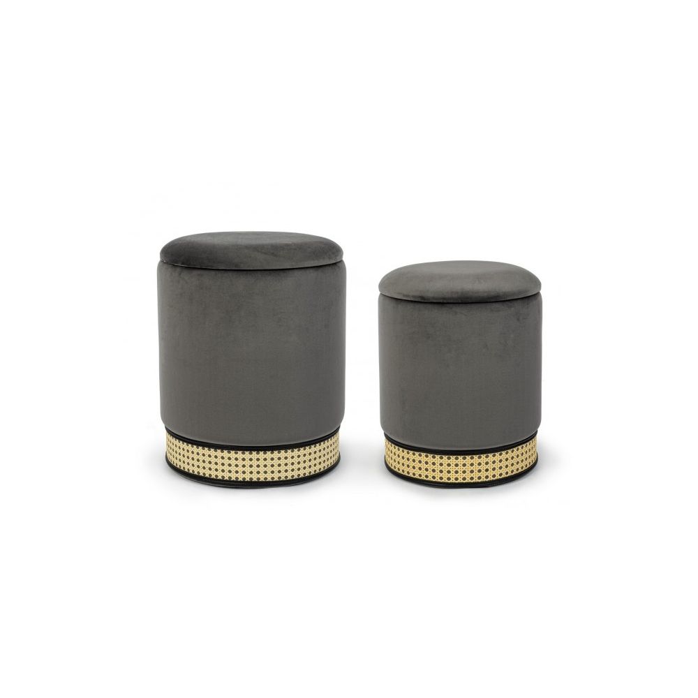 MDF AND PLYWOOD FRAME. COVER IN POLYESTER WITH VELVET EFFECT. WITH LEATHER (PU) AND SYNTHETIC RATTAN DECORATION.