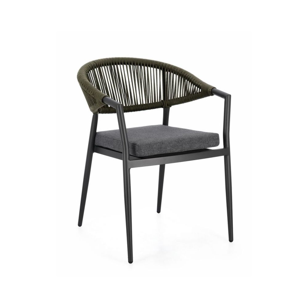 STRUCTURE IN POWDER COATED ALUMINIUM (POLYESTER). WEAVING FOR OUTDOOR IN OLEFIN ROPE (POLYPROPYLENE). REMOVABLE CUSHIONS IN OELFIN (100% POLYPROPYLENE) WATER-REPELLENT FABRIC. STACKABLE.