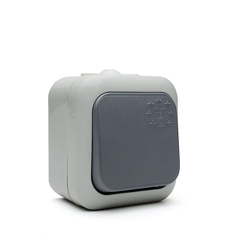 Euro Single-Pole Switch NC, sch.1, 10A, 250V, Surface Mount, IP44, Grey