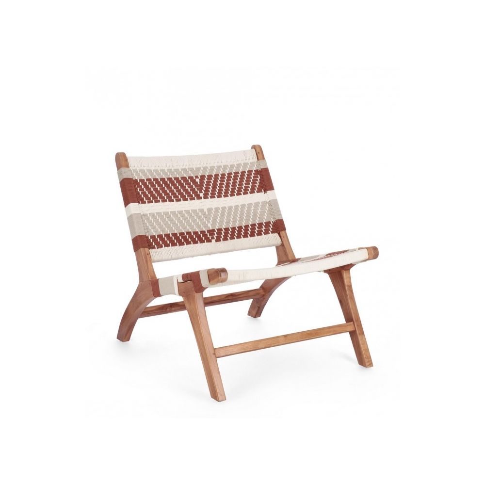 TEAK WOOD FRAME, SEAT AND BACK WITH ROPE WEAVING (65% COTTON, 35% POLYESTER). WATER-BASED PAINT FINISHING.
