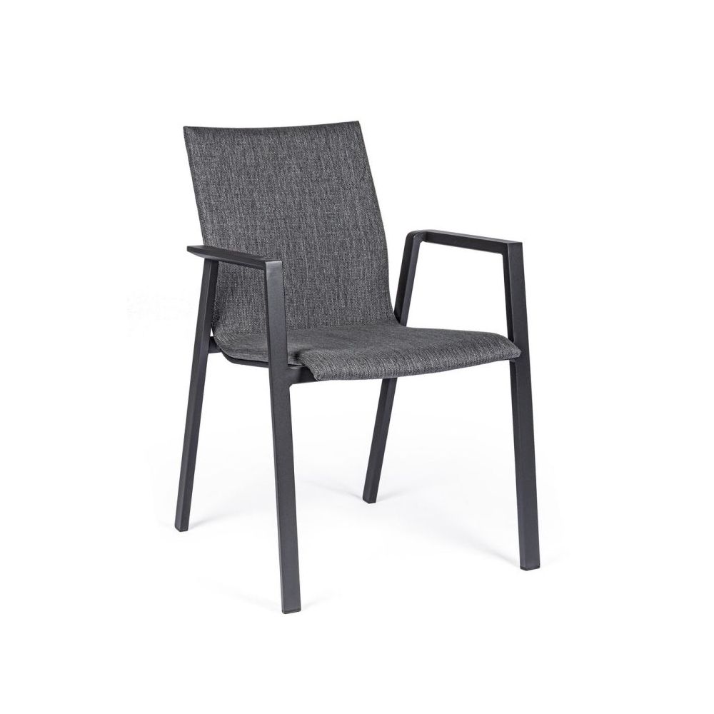 ALUMINIUM FRAME, POWDER COATED (POLYESTER). MIXED FABRIC (70% TEXTILENE AND 30% OLEFIN) WATER REPELLENT SEAT AND BACK COATING. PADDING FOR OUTDOOR USE FAST DRY FOAM. STACKABLE.