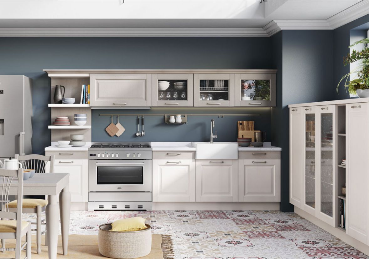 Врата, състояща се от каса с дебелина 20 мм и централен панел от масивно дърво абачи. Покритие с ефект на орех с полиуретанов грунд и матов акрил, покритие с полуотворени пори, със степен на гланц (10-12 Gloss); дъно полиуретаново лакирано и с матов акрил, покритие с отворени пори, с ниво на гланц (6-8 Gloss) за антично мариновано бяло.