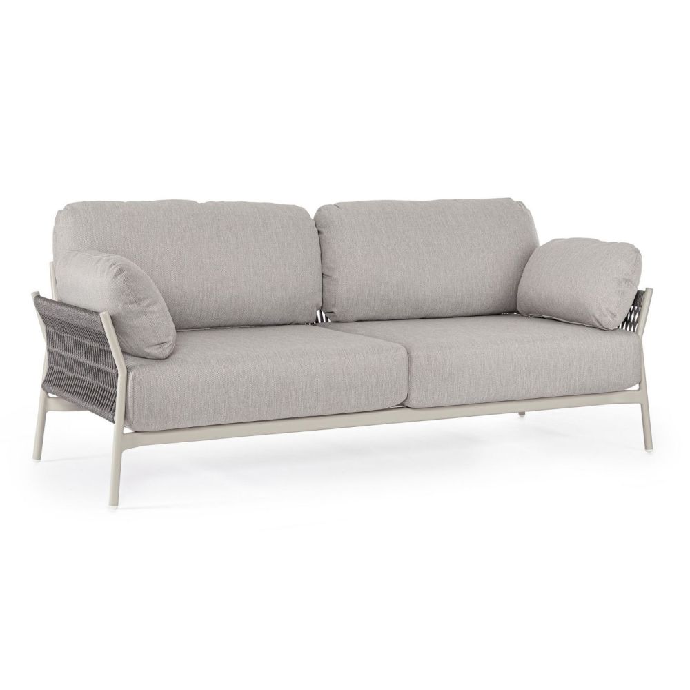 ALUMINIUM FRAME POWDER COATED (POLYESTER). ROPE WEAVING IN OLEFIN FABRIC (100% POLYPROPYLENE). SEAT AND BACK CUSHIONS WITH REMOVABLE COVER IN WATER REPELLENT OLEFIN FABRIC (100% POLYPROPYLENE).