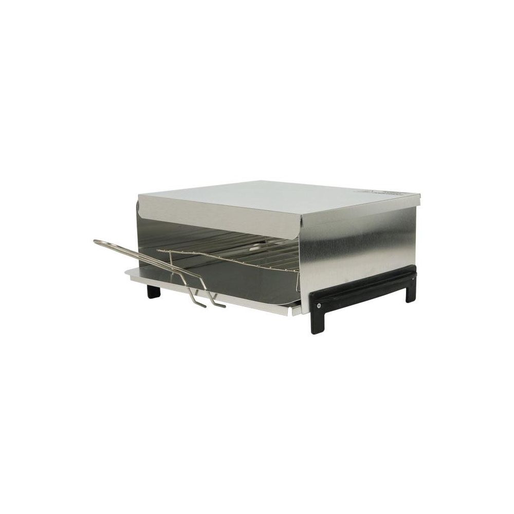 This party grill features a top heating element that heats up quickly. Thanks to its fast heating and slow cooling, it helps save both time and energy.