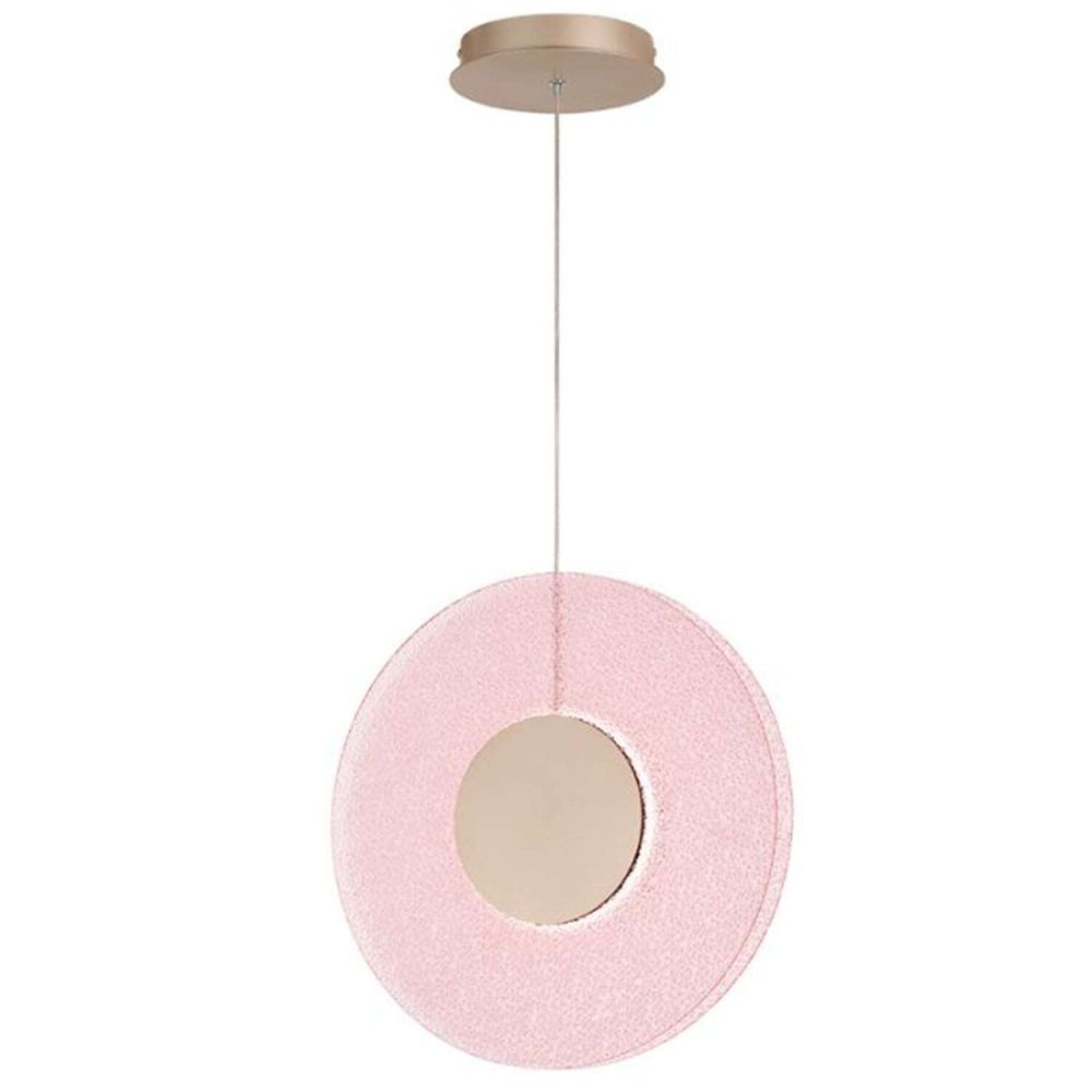 LED collection in painted metal and coloured grit glass. Gold painted metal frame. Available in single or multiple elements versions. Length-adjustable cables.