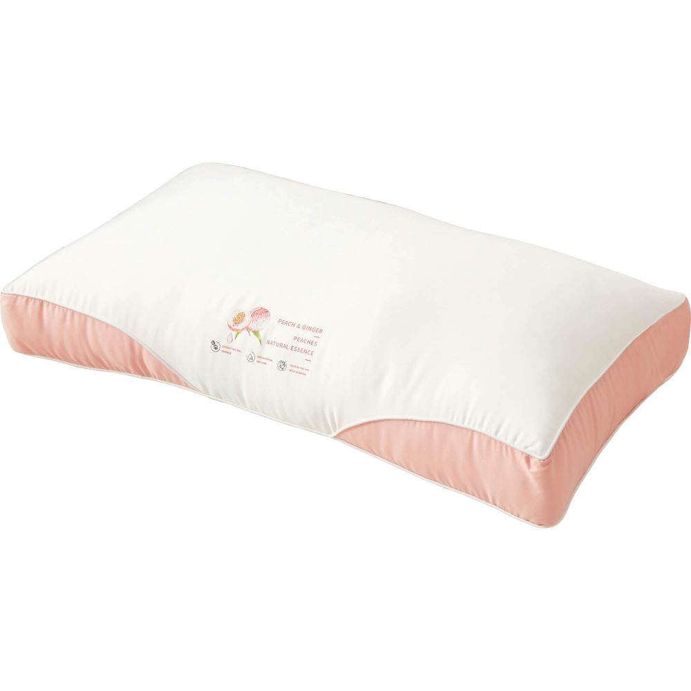 Luxuriously soft pillow infused with a gentle extract of natural peach essential oil Soothing properties – the light peach aroma helps reduce daily stress and promotes restful sleep Size: 45 × 65 cm Firmness level: soft Height: 19 cm (measured without pressure from the highest point) Removable cover: no Weight: 900 g Composition – cover fabric: 100% polyester with peach aroma Composition – filling: 3D silicone fiber, 100% polyester *Images are for illustrative purposes only and slight variations in tones and colors may occur.