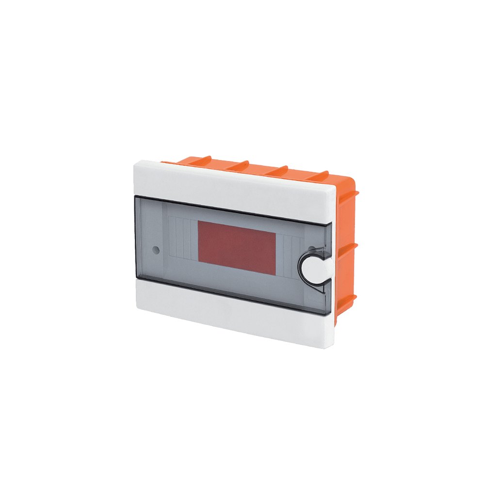 The distribution boxes are designed for mounting in newly built buildings or buildings in reconstruction. They are a module box with mounted protective devices of the given flats electrical current circuit circles. They are supplied with transparent door for each row opening upwards to 90°. They are made of white self-extinguishing plastic, resistant to heat and high temperature with IP code: IP 40. The mounted device in the box is protected from direct contact to the current leading parts. They are offered with DINrail for device mounting and terminal strips for the neutral and earthing conductor joining. Mounted directly on the walls with screws.
