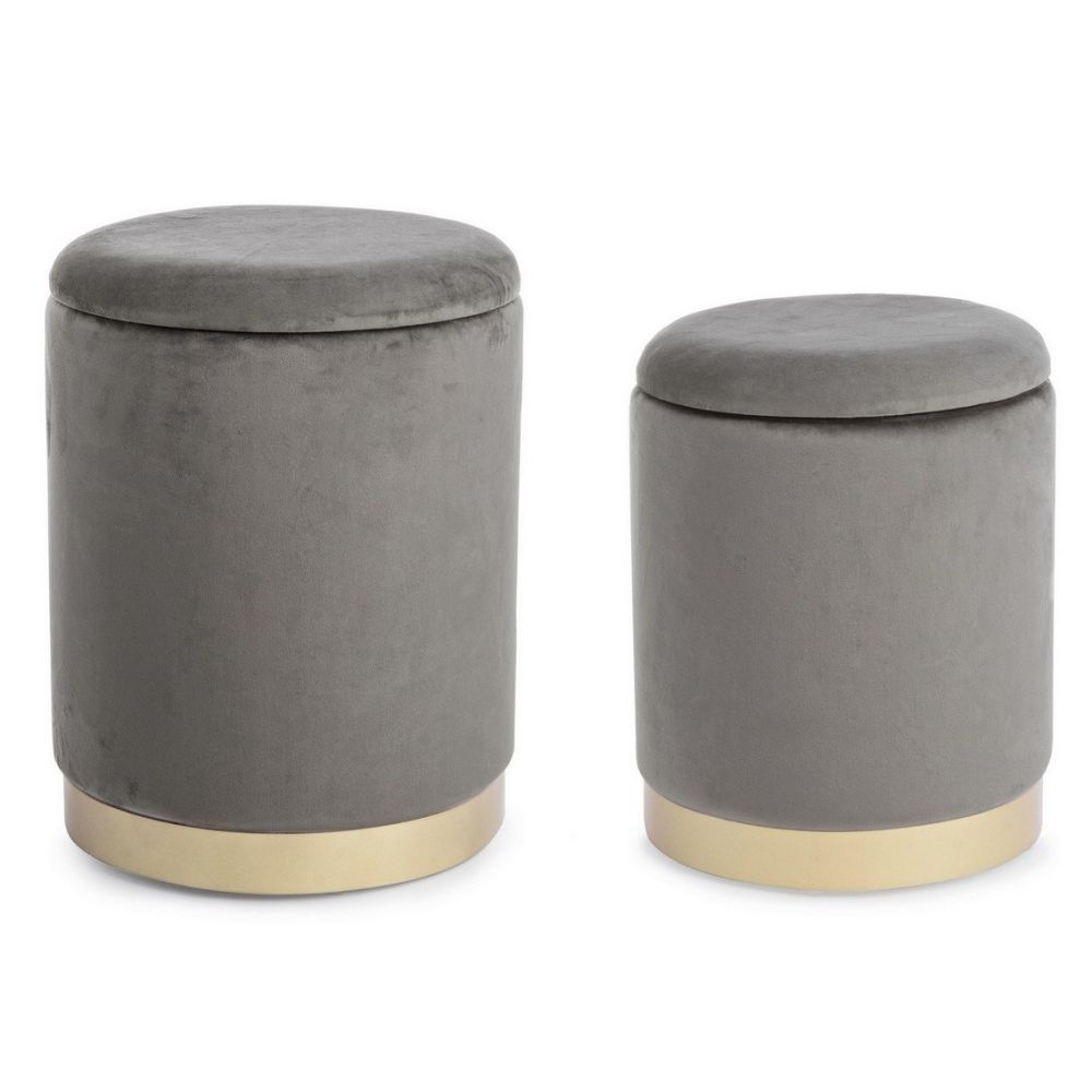 MDF AND PLYWOOD FRAME. COVER IN POLYESTER WITH VELVET EFFECT. DENSITY FOAM 30KG/M3. GOLD STEEL DECORATIVE RING ON THE BOTTOM.