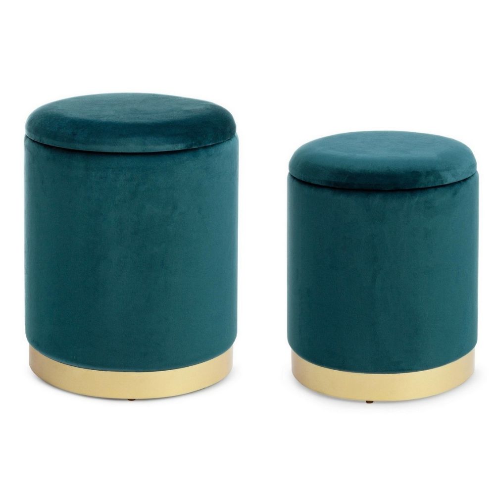 MDF AND PLYWOOD FRAME. COVER IN POLYESTER WITH VELVET EFFECT. DENSITY FOAM 30KG/M3. GOLD STEEL DECORATIVE RING ON THE BOTTOM.