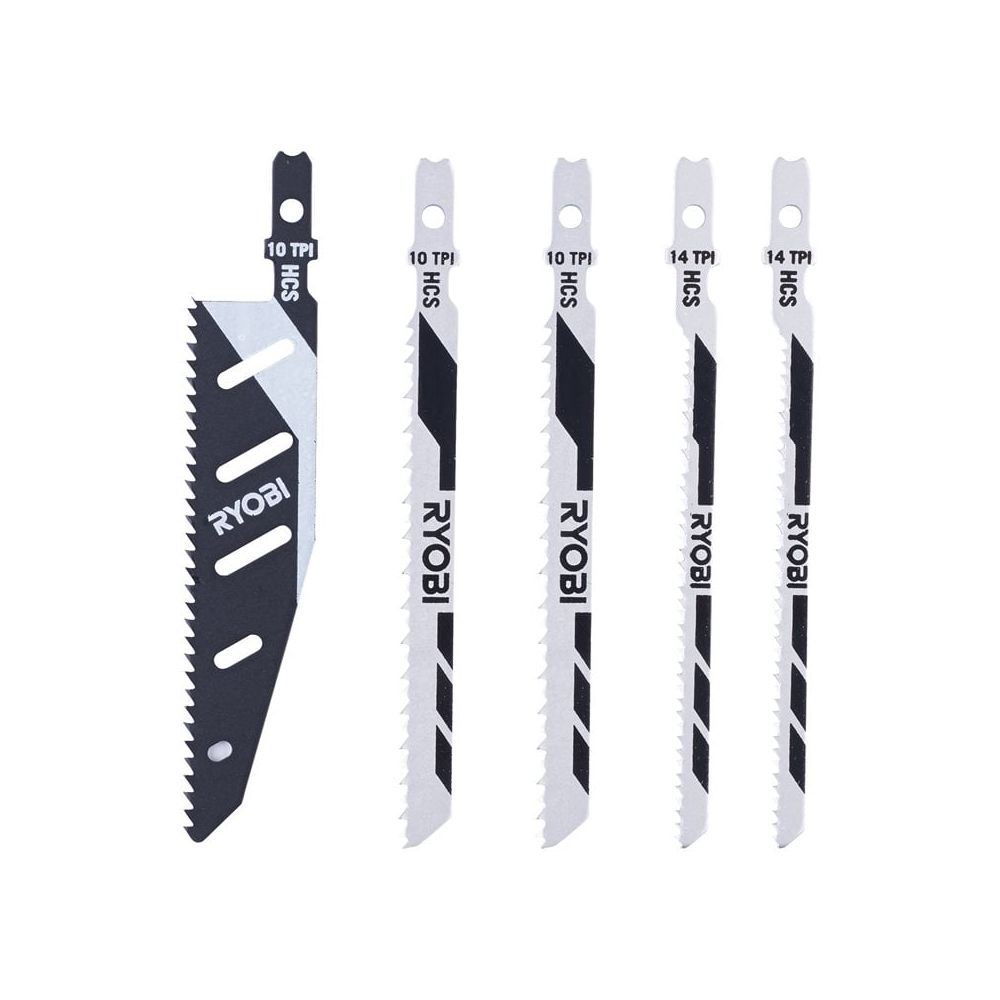 Комплектът включва: 1 x 10TPI нож за рязане до повърхност, 2 x 14TPI ножа за криволинейно рязане, 2 x 10TPI ножа за дърво