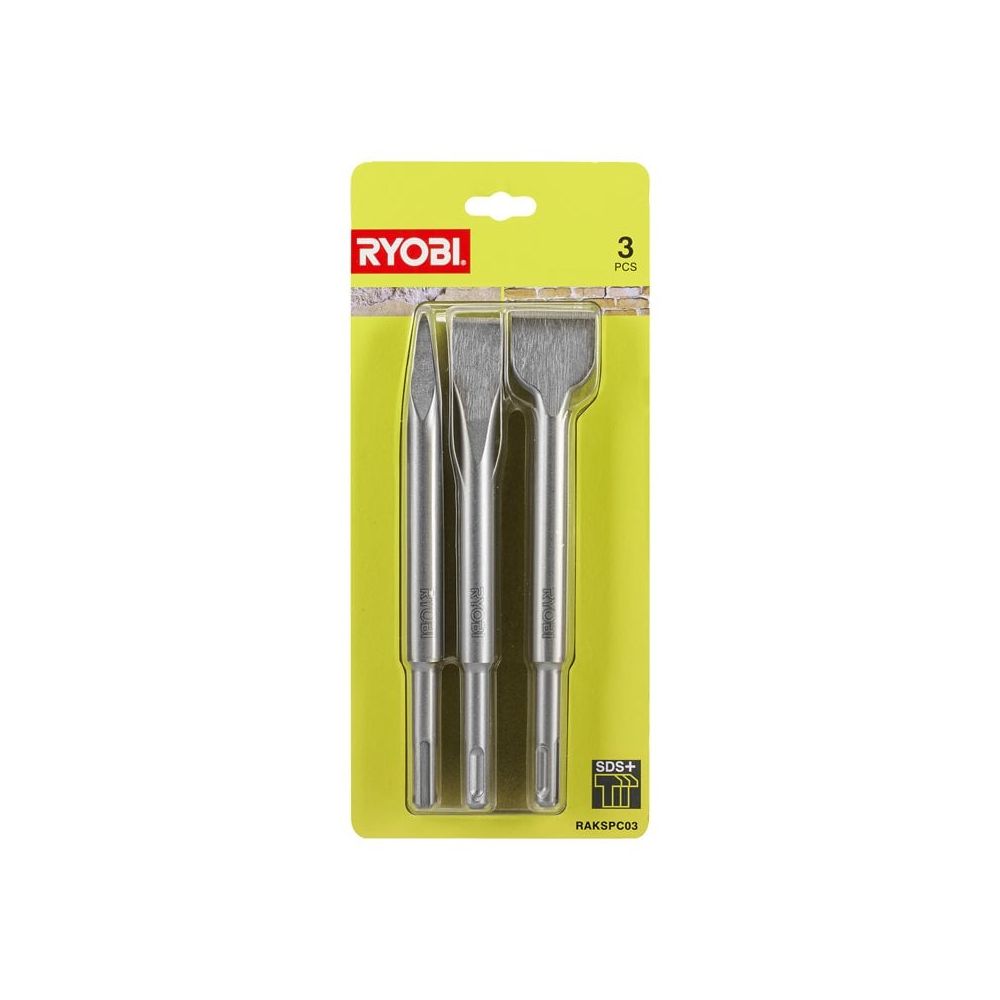 The Ryobi RAKSPC03 SDS+ Chisel Bits includes 3 SDS+ drill bits for a range of chiselling applications. Fits Ryobi Models R18SDS, RSDS680, RSDS800, RSDS1050 and all other SDS+ Rotary Hammer Drills. Includes 3 x SDS+ Chisels: 1 x Pointed Chisel (200mm), 1 x Flat Chisel (200mm), 1 x Wide Chisel (300mm).