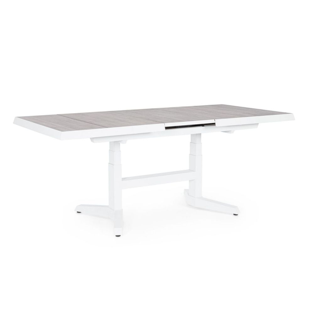 ALUMINIUM FRAME, POWDER COATED (POLYESTER), CERAMIC TOP (THICKNESS 10MM). WITH AUTOMATIC EXTENTION. ADJUSTABLE HIGHT WITH HANDLE. STAINLESS STEEL SCREWS. STAINLESS STEEL SCREWS. ADJUSTABLE FEET .TO BE ASSEMBLED.