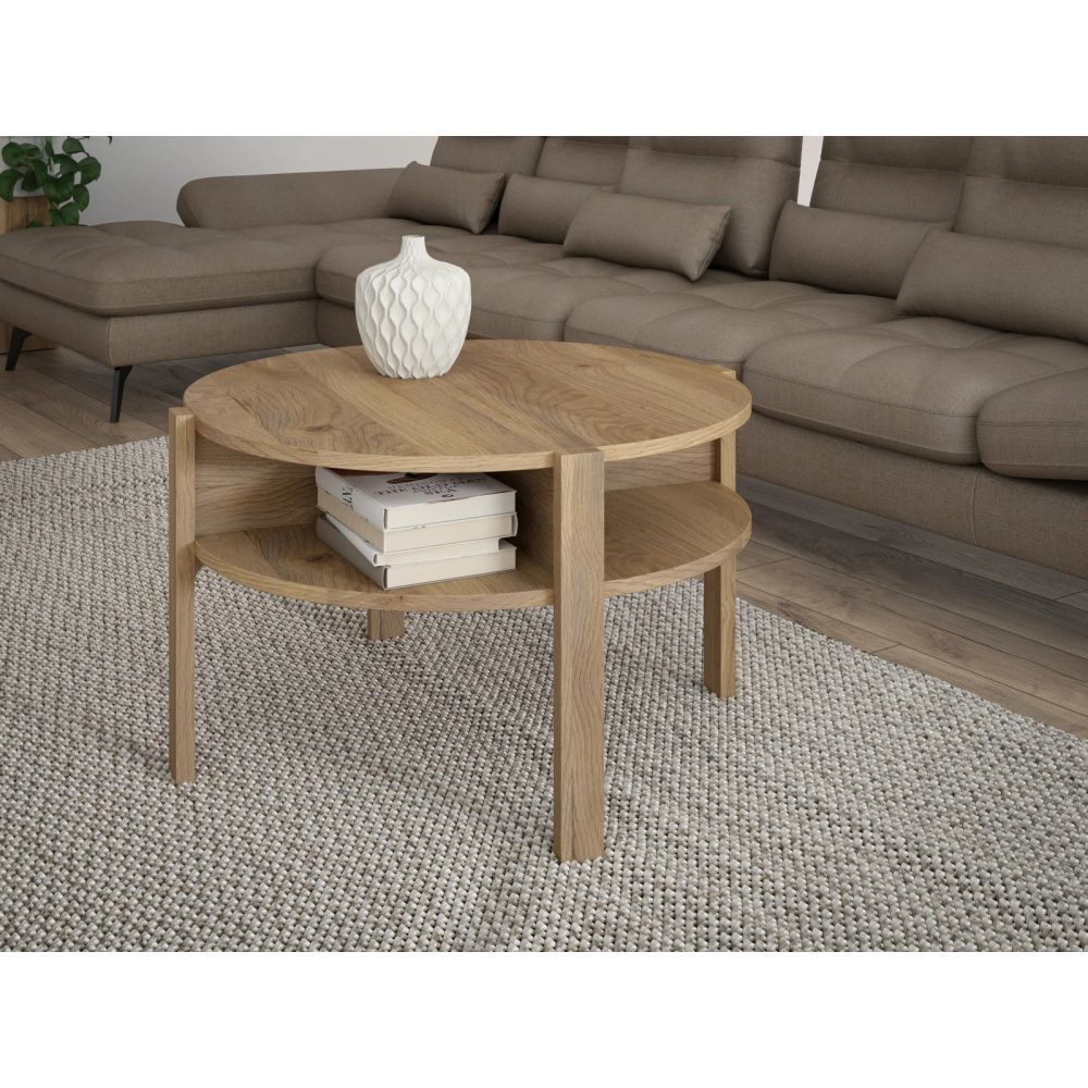 Round coffee table with shelf 75x75 cm TWO, mauvella oak
