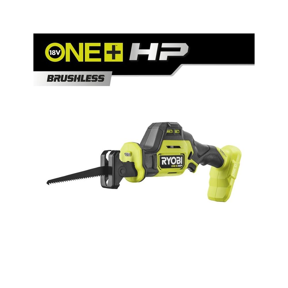 As part of the new Ryobi High-Performance Brushless Compact Series of cordless tools, this recip saw is Ryobi’s most compact yet at less than half the size of a traditional saw making it ideal for one handed use, making overhead cuts or cuts in tighter spaces. Incorporating advanced Brushless technology means more power, longer runtime and a longer life through its frictionless motor. Intelligent electronics constantly regulate the motor and ensure a smooth power delivery as well as efficient use of the battery. With an 22mm stroke length and 3200 strokes per minute, this saw cuts through just about anything - it truly is a multimaterial saw. Featuring a tool-less blade clamp for quick and easy blade change.