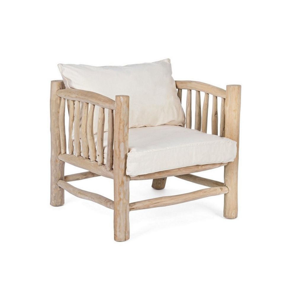 TEAK BRANCHES WITH NATURAL FINISHING. CUSHIONS WITH REMOVABLE COVER FOR INDOOR USE IN POLY COTTON FABRIC. FOR INDOOR USE ONLY. PACKING WITHOUT CARTON BOX.