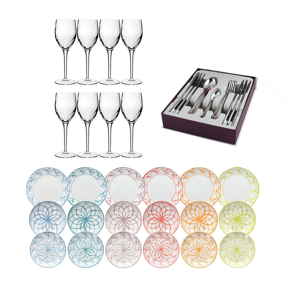 Home / Cooking and Eating / Eating and Serving / Serving Sets / Serving set with wine glasses Grandi Vini CANALETTO, Table set MADISON LISBOA and Cutlery box set PRINCESS You are currently in the order edit mode. Leave calcActive())"> View larger image Serving set with wine glasses Grandi Vini CANALETTO, Table set MADISON LISBOA and Cutlery box set PRINCESS In stock SKU: HF-S-SET08 Product Wine glasses Grandi Vini CANALETTO 375ml 4pcs. clear €33.69 Price VAT included Qty: - + Table set MADISON LISBOA, 18 pcs €43.20 Price VAT included Qty: - + Cutlery box set PRINCESS 24 pcs. Violet box €114.92 Price VAT included Qty: - + Amount: Add to Cart Check availability in stores Availability in stores Available Not available Availability by warehouse: Samples: Samples: Yes Please wait, the information is being checked. Please select an option to see store information. Currently, store information cannot be displayed. Added to wishlist Add to Wish List loader Loading... Add to Compare Characteristics Dimensions (L × W × H) - Ratings and comments You may also like SKU: Products in the same category SKU: