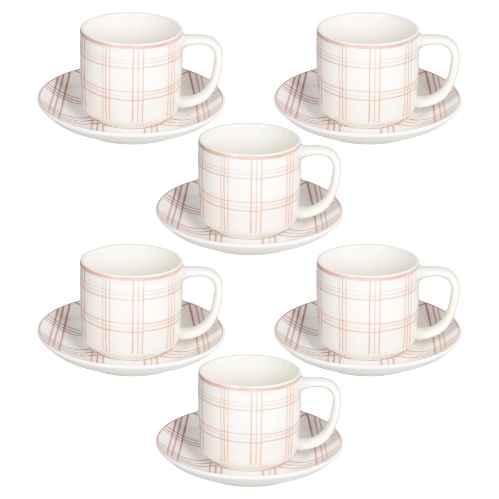 Set of 6 Tea cups with saucers IVY QUADRO MANDORLA, 220 ml