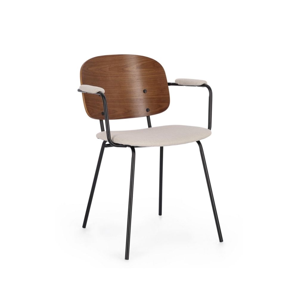 STEEL FRAME EPOXY POWDER COATED. PLYWOOD BACKREST, POPLAR VENEERED. PLYWOOD SEAT AND ARMRESTS COVERED IN 100% POLYESTER. TO BE ASSEMBLED.