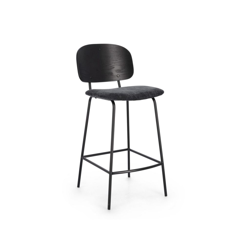 STEEL FRAME EPOXY POWDER COATED. PLYWOOD BACKREST, POPLAR VENEERED. PLYWOOD SEAT COVERED IN 100% POLYESTER. TO BE ASSEMBLED.