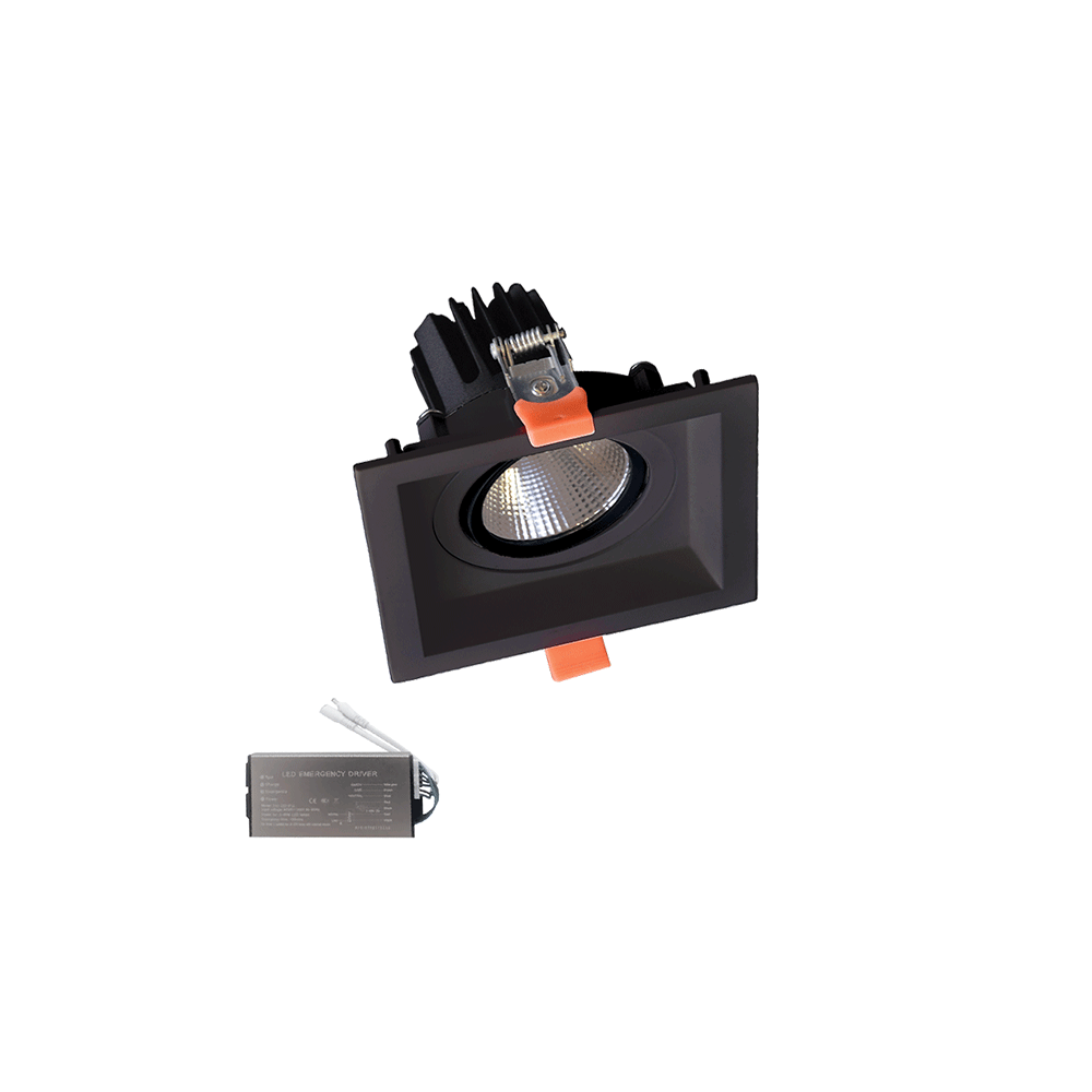 Square LED spot light 30W 230V 3000K BL+emergency kit