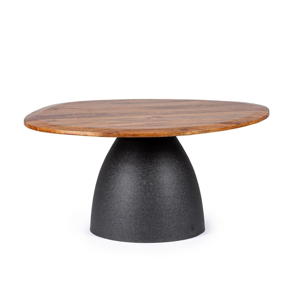 TOP IN MANGO WOOD WITH IRREGULAR FORM WITH WATER-BASED FINISHING. FINAL FINISHING IN NITROCELLULOSE LAQUER.EPOXY POWDER COATED STEEL BASE MATERIC EFFECT.BASE TO BE ASSEMBLED