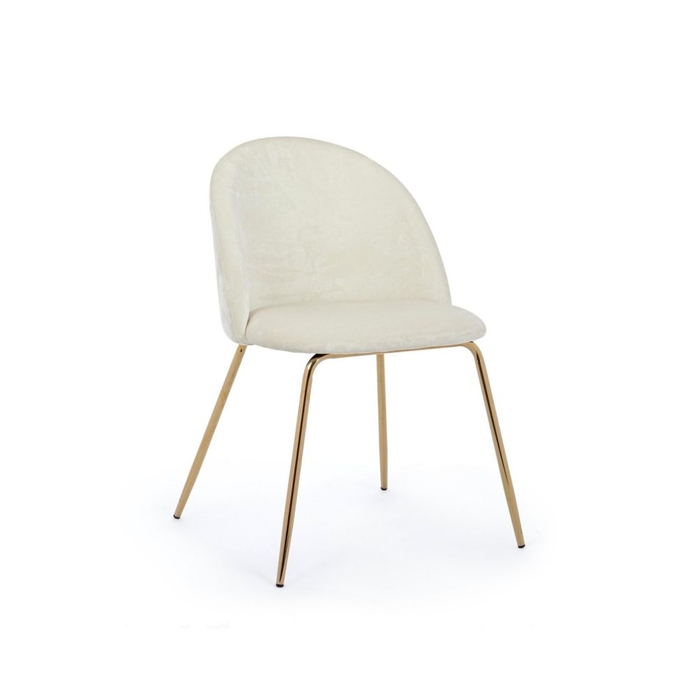 GOLD CHROMED STEEL TUBE LEGS. SEAT AND BACK FILLED WITH POLYURETHANE FOAM AND COVERED BY VELVET (100% POLYESTER). LEGS TO BE ASSEMBLED.