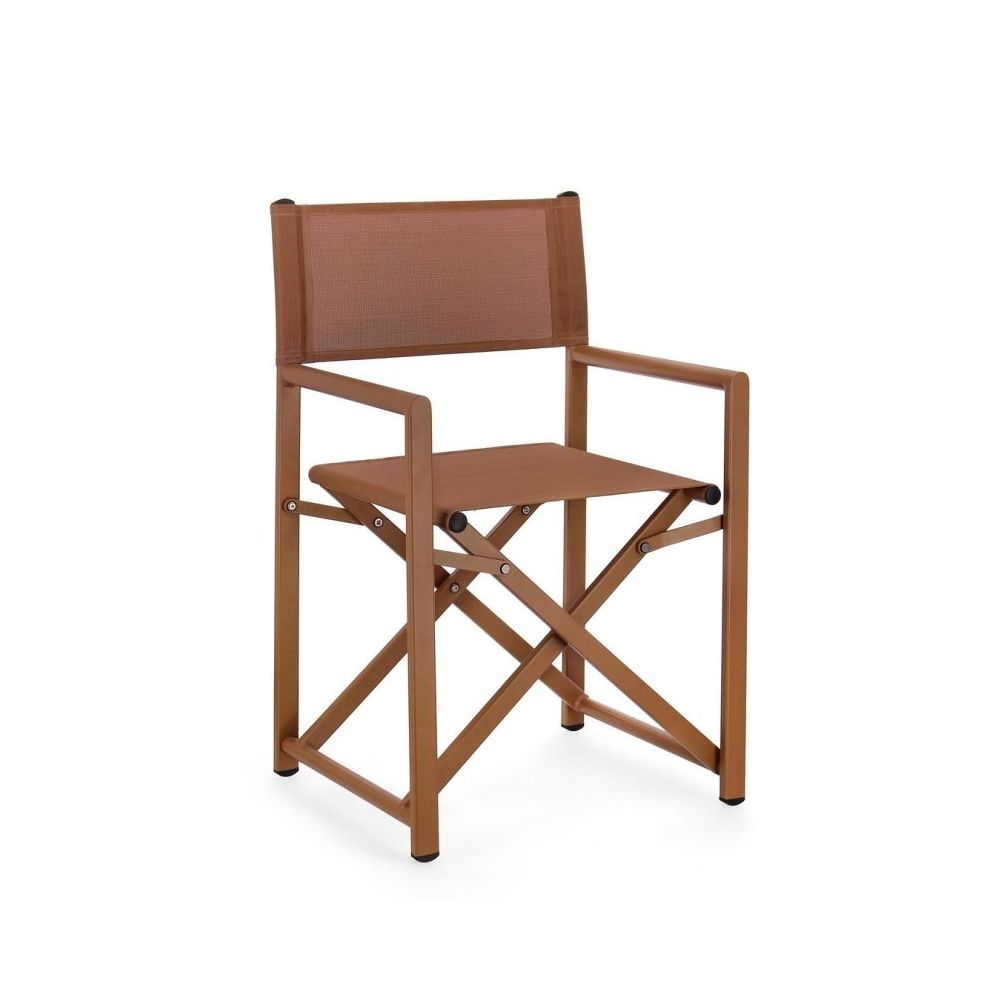ALUMINIUM FRAME POWDER COATED (POLYESTER). SEAT AND BACK IN TEXTILENE 2X1 (610G/M2), WITH THERMO-WELDED STITCHING. GALVANIZED STEEL HARDWARE. FOLDING.