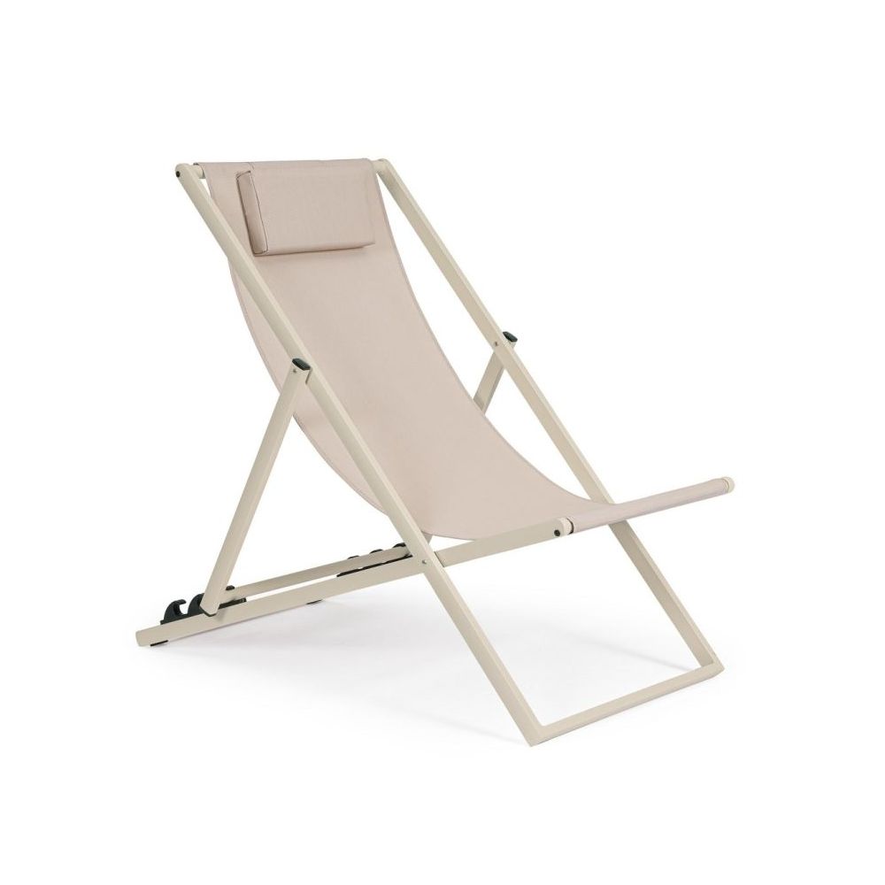 ALUMINIUM FRAME POWDER COATED (POLYESTER). SEAT AND BACK IN TEXTILENE 2X1 (610G/M2). GALVANIZED STEEL HARDWARE. THREE POSITIONS.