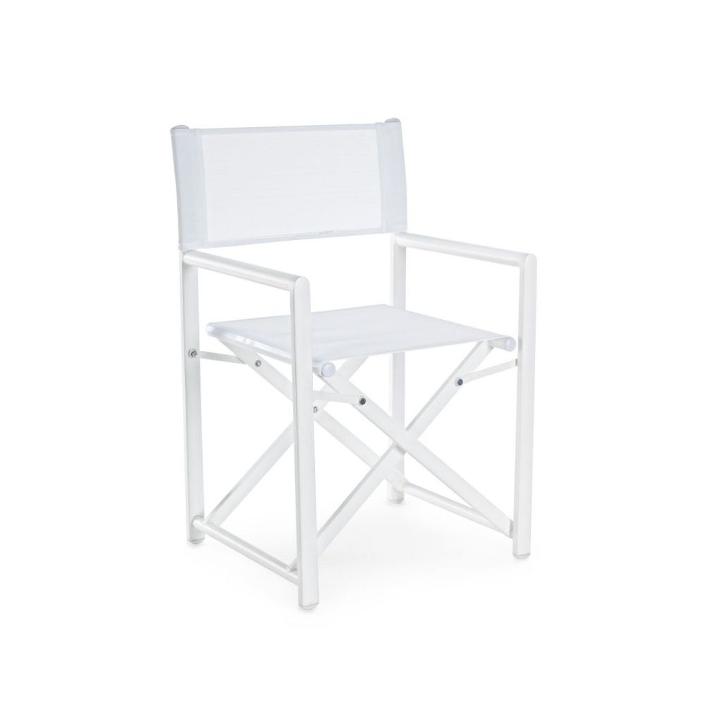 ALUMINIUM FRAME POWDER COATED (POLYESTER). SEAT AND BACK IN TEXTILENE 2X1 (610G/M2), WITH THERMO-WELDED STITCHING. GALVANIZED STEEL HARDWARE. FOLDING