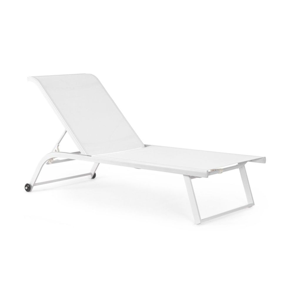 ALUMINIUM FRAME POWDER COATED (POLYESTER). SEAT AND BACK IN TEXTILENE 2X1 (610G/M2). RECLINABLE BACK (4 POSITIONS). GALVANIZED STEEL SCREWS. PLASTIC WHEELS TO BE ASSEMBLED.
