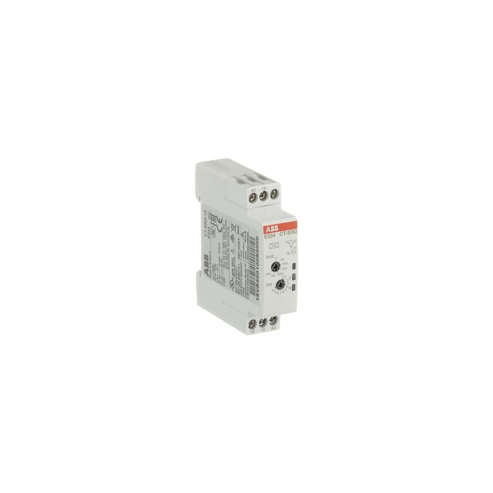 The CT-ERD.12 is a single-function electronic time relay from the CT-D timer range. It provides an ON-delay (delay on make) function with 7 time ranges from 0.05 s to 100 h. This time relay operates with a rated control supply voltage of 24 - 48 V DC / 24 - 240 V AC and has a 1 c/o (SPDT) output rated at 250 V / 6 A.