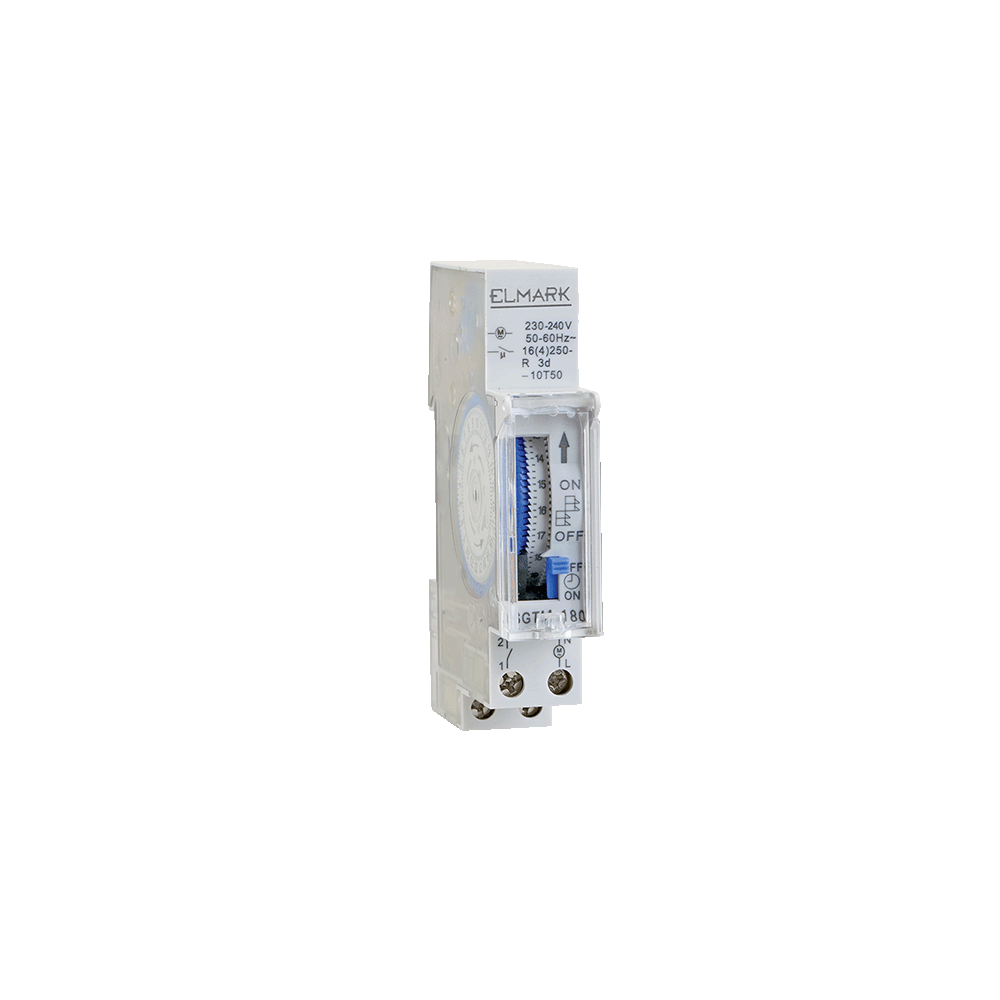 The mechanic relay for time is supposed to be used for managing chains with maximum capacity of 3500W.After the setting ,the timer executes the functions we required in 24 hours regime. The minimum period for setting is 15 minutes for TM 180 and 30 minutea for TM 181 as it is executed within 96 and 48pcs segments which the timing of the work and rest of the consumer is being set. The timer is accomplished with a battery which assures the work by 70 hours for TM 180 and 150 hours for TM 181 after power failure.