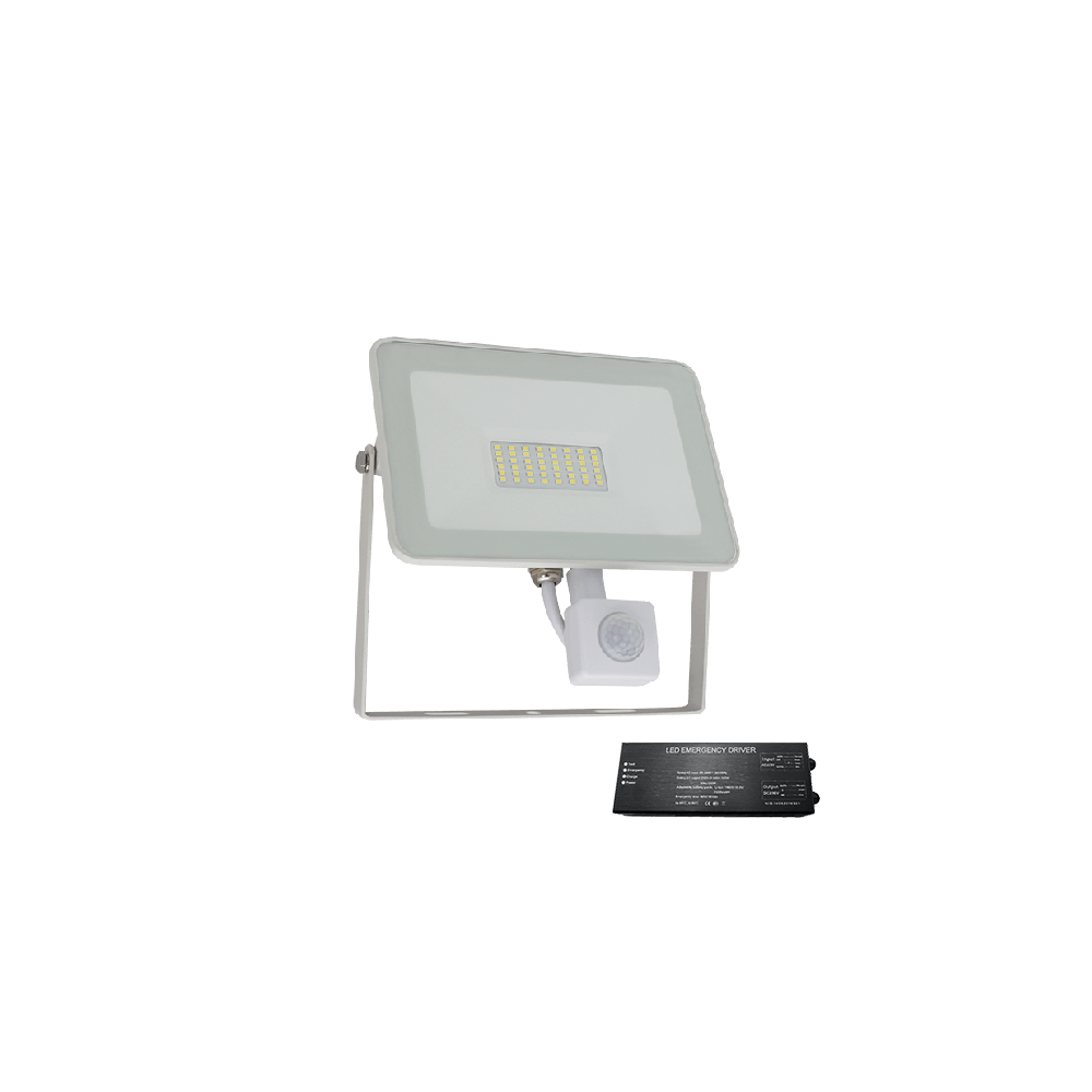 VEGA slim SMD 50W LED floodlight with sensor white+ emergency kit