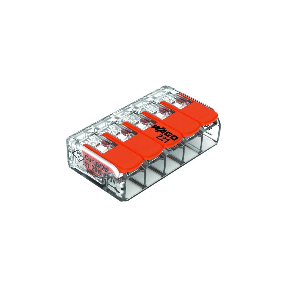WAGO 221 CONNECTOR, 5 CONDUCTORS 0,02-4 MM2