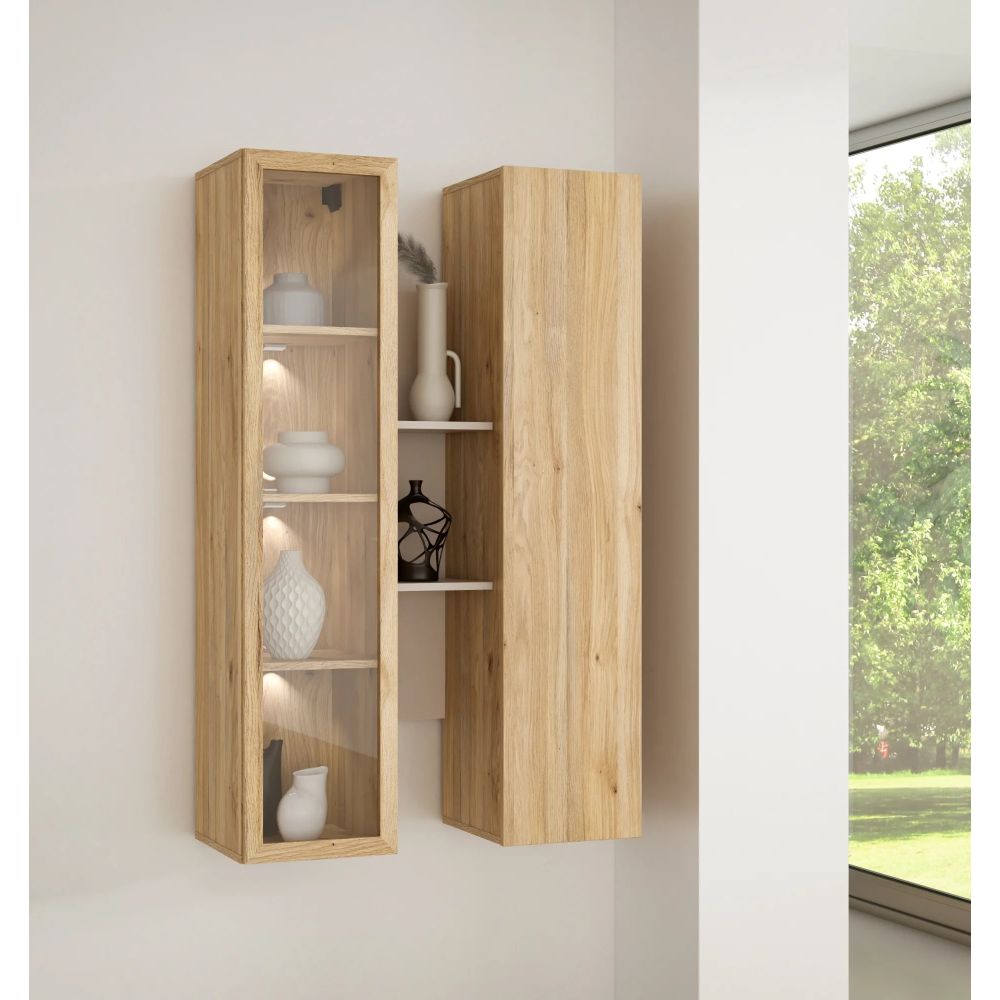 Wall-hung cabinet TWO 85 cm, mauvella oak and sand, LED lighting