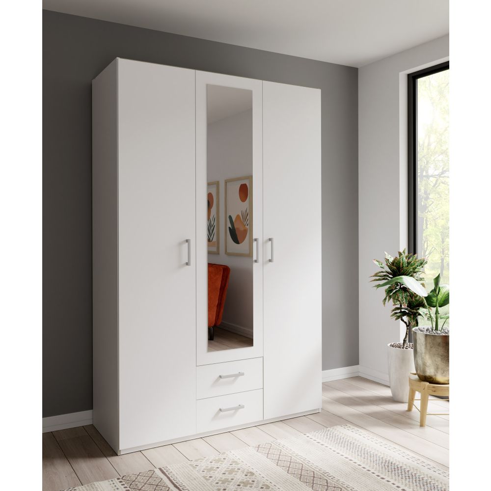 Wardrobe FIVE 130 cm with mirror and drawers, White