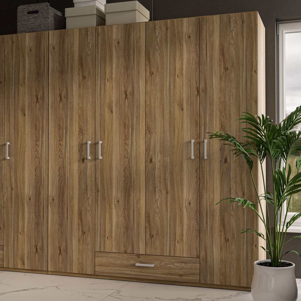 Wardrobe FIVE 180 cm with doors and drawer, Mauvella Oak